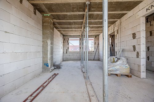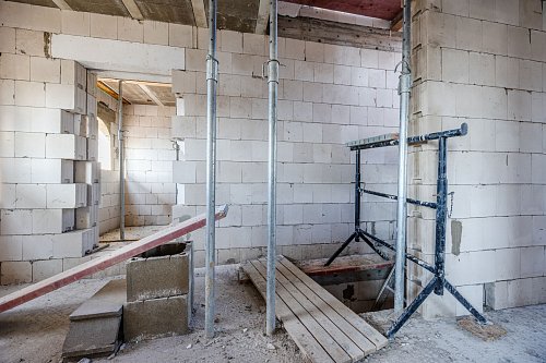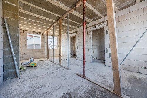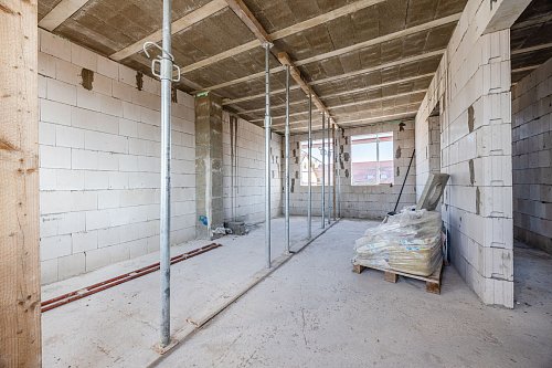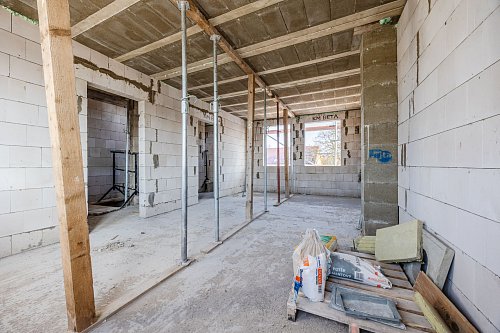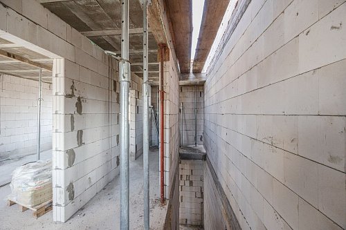 8/2025 - probíhají vyzdívky prvního patra, příprava pro stropní konstrukci